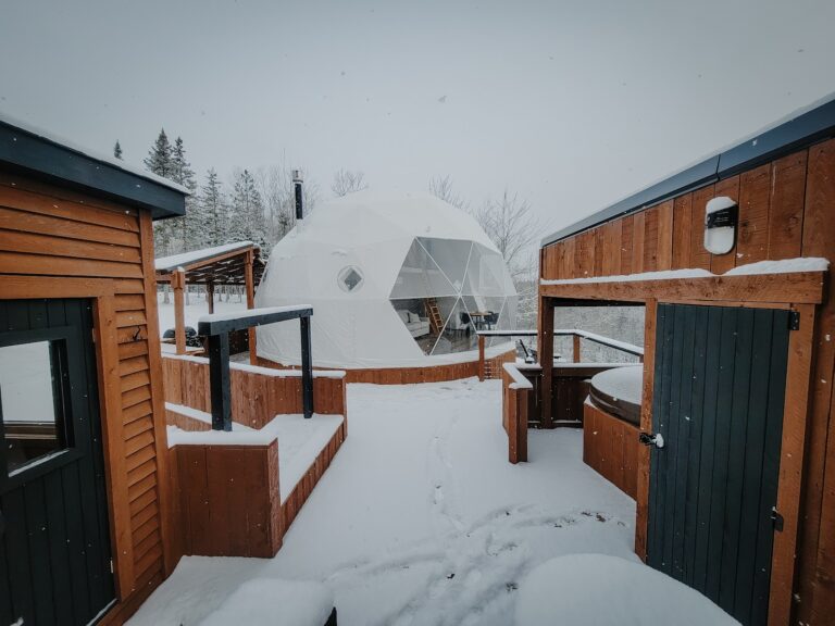 Nestled along the tranquil Richibucto River in Beersville, New Brunswick, Savasana Nordic Spa offers an immersive escape where hydrotherapy and mindful relaxation merge into a soothing thermal journey. Each intimate glamping dome—a luxurious retreat designed for connection and calm—is equipped with its own sauna, hot tub, and outdoor relaxation space, allowing guests to flow effortlessly between intervals of heat and rest while surrounded by forested serenity.