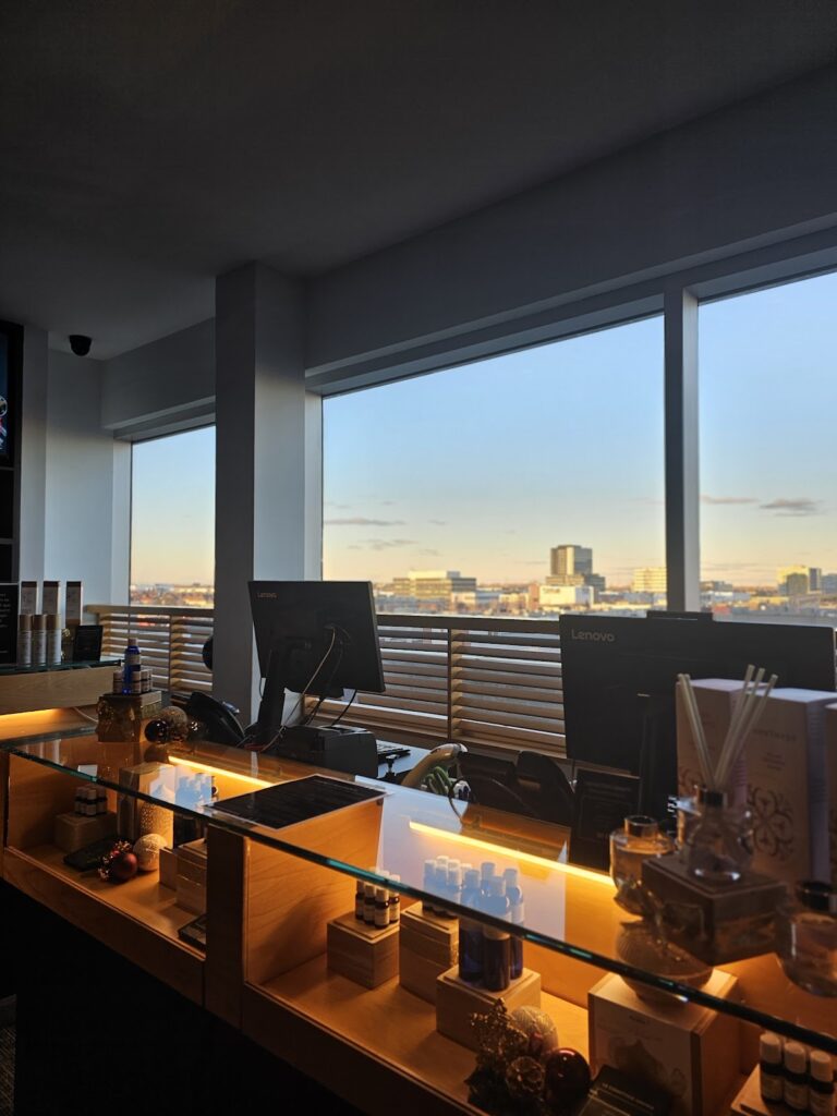Experience the rejuvenating power of hydrotherapy at SkySpa DIX30, where ancient Scandinavian traditions meet modern wellness. Our thermal journey invites you to cycle through invigorating heat, refreshing cold, and peaceful rest, promoting relaxation and vitality. Immerse yourself in our Finnish saunas, steam rooms, whirlpools, and plunge pools, designed to soothe muscles, enhance circulation, and alleviate stress.